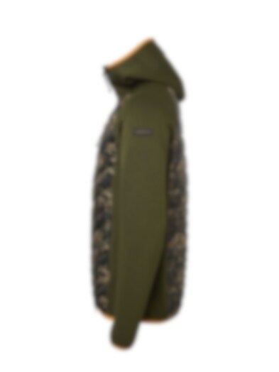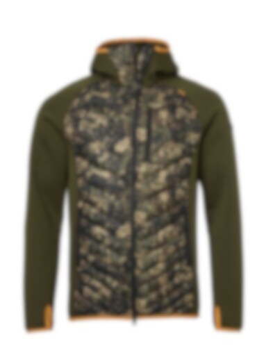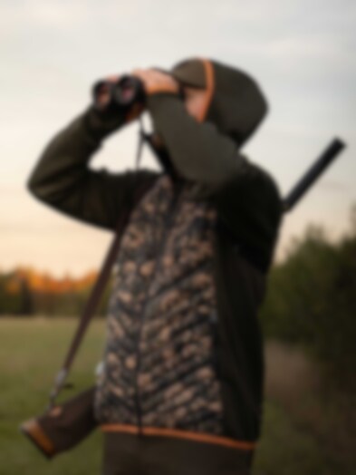 Die Hunter Hybrid Hood Jacket Men ist eine technische Hybridjacke für Herren, die Bewegungsfreiheit mit angenehmer Wärme kombiniert – ideal für aktive Tage bei kühlem Wetter.Diese durchdacht konstruierte Outdoorjacke ist wie geschaffen für Jäger, Hundeführer oder Wanderer, die ein leises, flexibles und funktionales Kleidungsstück suchen.Die Ärmel und Seiten bestehen aus einem elastischen Material mit hoher Atmungsaktivität, während Vorder- und Rückseite aus gestepptem Gewebe mit 120 g Wattierung gefertigt sind – für wohlige Wärme genau dort, wo man sie am meisten braucht.Die fest angenähte Kapuze hat ein flaches Profil und bietet Schutz, ohne die Sicht einzuschränken. Die verlängerten Ärmel sind mit elastischen Bündchen und Daumenlöchern ausgestattet, um Wind und Kälte effektiv draußen zu halten. Der YKK-Zweiwege-Reißverschluss vorne sorgt für angenehme Belüftung bei intensiver Bewegung.Funktionelle Details für Jagd und Outdoor-Aktivitäten:Hybridkonstruktion: Wattierte Bereiche für Wärme, Stretch-Einsätze für BewegungsfreiheitChevalier Deer Camo-Muster: Für optimale Tarnung in der NaturFeste Kapuze & lange Ärmel: Effektiver Schutz bei Wind und KältePraktische Taschen: Brust- und Seitentaschen mit Reißverschlüssen für sichere AufbewahrungYKK-Zweiwege-Reißverschluss: Flexibles Lüften und optimale BeweglichkeitAntennenschlaufen auf den Schultern: Ideal zur Befestigung von Funkgerät oder GPSDie Hunter Hybrid Hood Jacket Men ist ideal für aktive Jagdarten wie Pirschjagd, Drückjagd oder auch für Hundearbeit im Gelände. Ob als leichte Außenschicht im Frühling und Herbst oder als wärmende Zwischenschicht im Winter – diese Jacke passt sich dem Wetter und deinen Aktivitäten an.Ein leiser, technischer Allrounder – mit Fokus auf Komfort, Funktionalität und Stil.