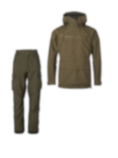 Ein wasser- und winddichtes Hardshell-Set für Damen.Die Anorakjacke ist eine flexible Jagdjacke mit einem schräg verlaufenden, wasserabweisenden Frontreißverschluss. Das Material ist sowohl strapazierfähig als auch weich, und dank unserer Chevalite-Membran und versiegelter Nähte ist es komplett wind- und wasserdicht. Das Jagdset bietet viele praktische Funktionen.